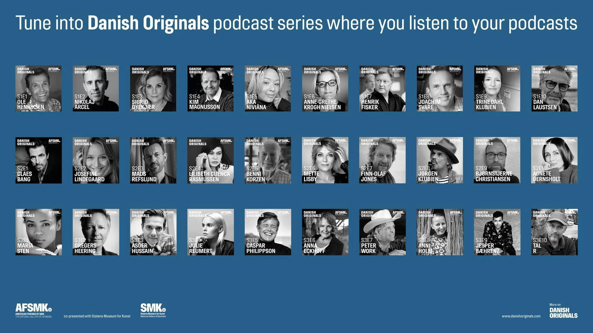 DANISH ORIGINALS is a podcast series, in English, presented by American Friends of Statens Museum for Kunst, and features Danish creatives who have made a mark in the US. The guests are outstanding thinkers and makers in visual art, music, film, television, stage, radio, podcasts, design, architecture, poetry, literature, dance, comedy, food and drink, fashion, green initiatives, social sustainability, and other fields. These Danish creatives share their stories, of their beginnings, their vision, their struggles and triumphs, their worldviews and ideals. They discuss how their connection to Denmark and to Danish culture has grounded, inspired, or even diverted them in their journeys.