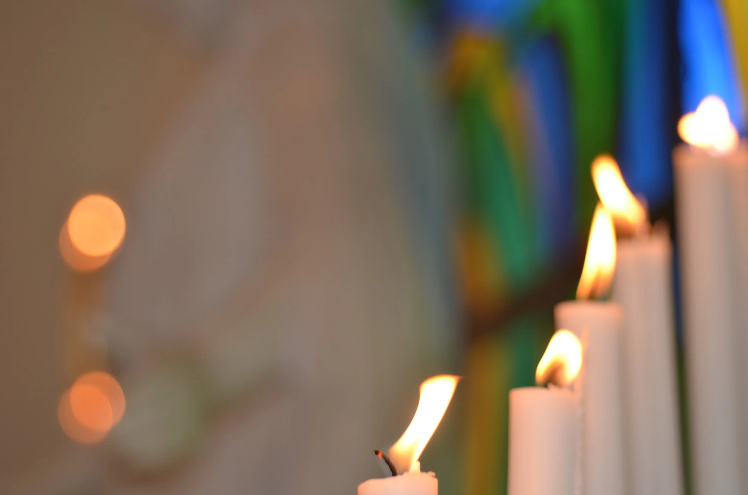 Our sanctuary is an airy and light-filled room during the day and in the evening the two stained glass windows are beautifully reflected over the Christ statue and towards the front of the altar area and over the side pews respectively. The sanctuary décor is a harmonious combination of traditional and contemporary Christian religious art and Danish church traditions.