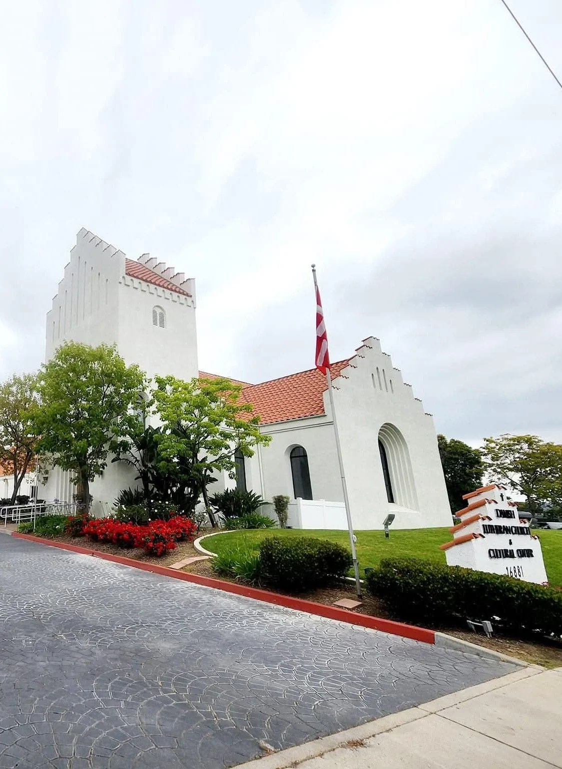 From 1937 to 1993 the congregation worshipped in the beautiful church on 3rd Ave and 42nd Street (4260 3rd Ave, Los Angeles). Edith M. Northman’s design incorporated a dominant saw-toothed gabled facade and rear elevation of the main building section, a recessed main doorway of concentric arches, a stepped gable side entrance to the Church, and a whitewashed exterior. The tower stood 35 feet (10.6 meters)