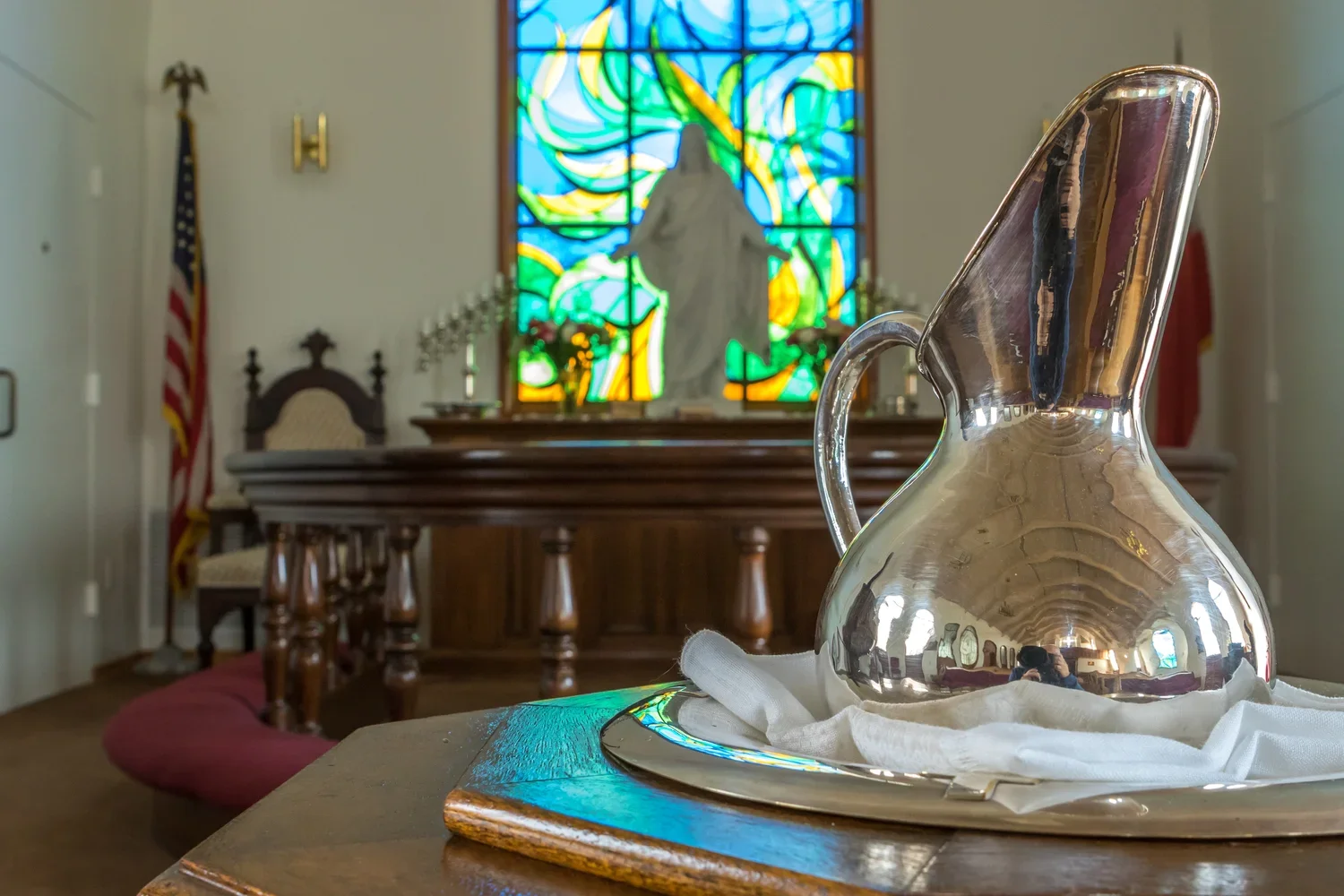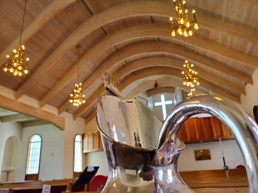 The church’s Friendship Circle donated the current silver plated baptismal pitcher in 1967.